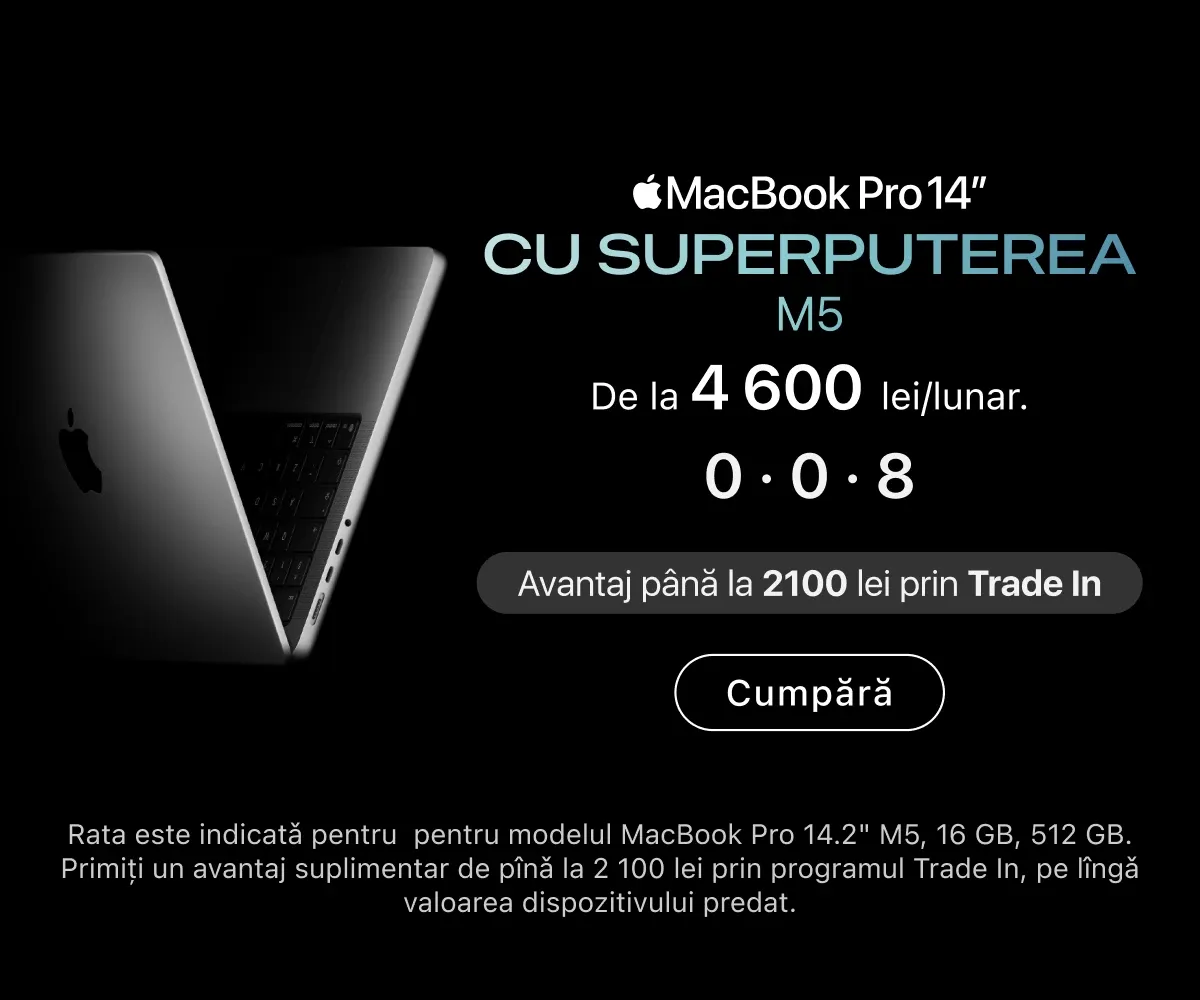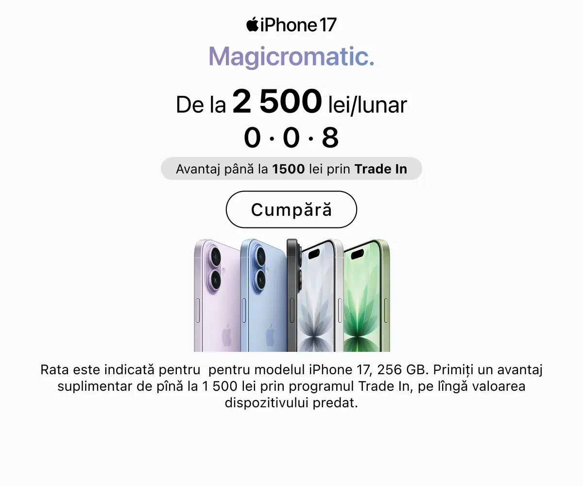 Cele mai recente serii de iPhone se află deja în vânzare. Puteți alege capacitatea de memorie dorită, culoarea preferată și puteți adăuga imediat accesorii originale. iPad-urile sunt ideale pentru muncă și creativitate: toate modelele sunt compatibile cu Apple Pencil și tastaturi, transformând tableta într-un instrument versatil pentru desen, notițe sau redactare.