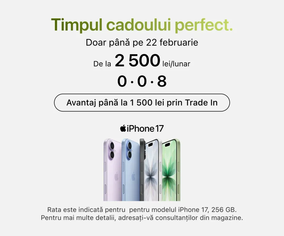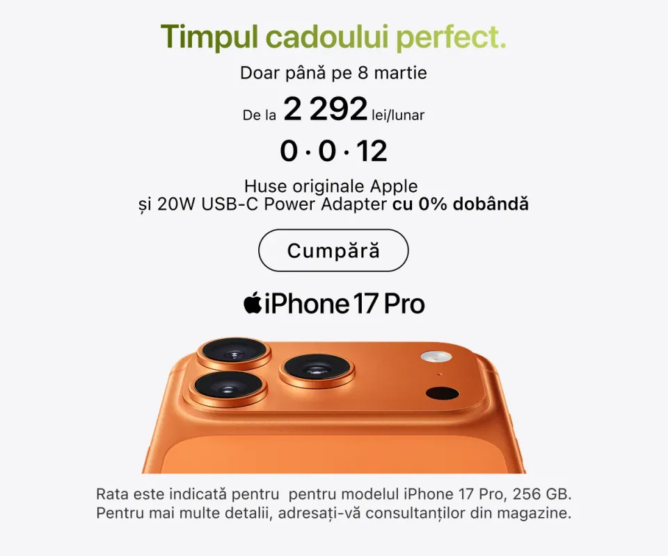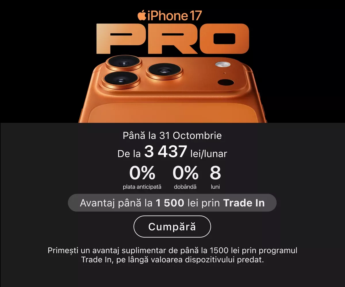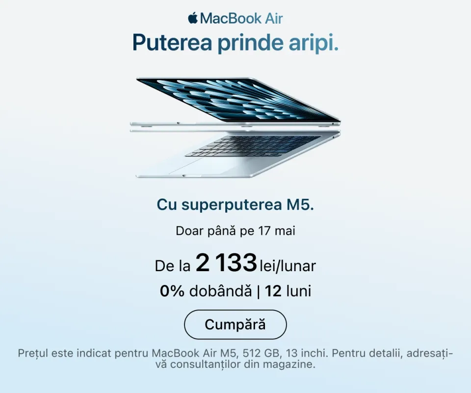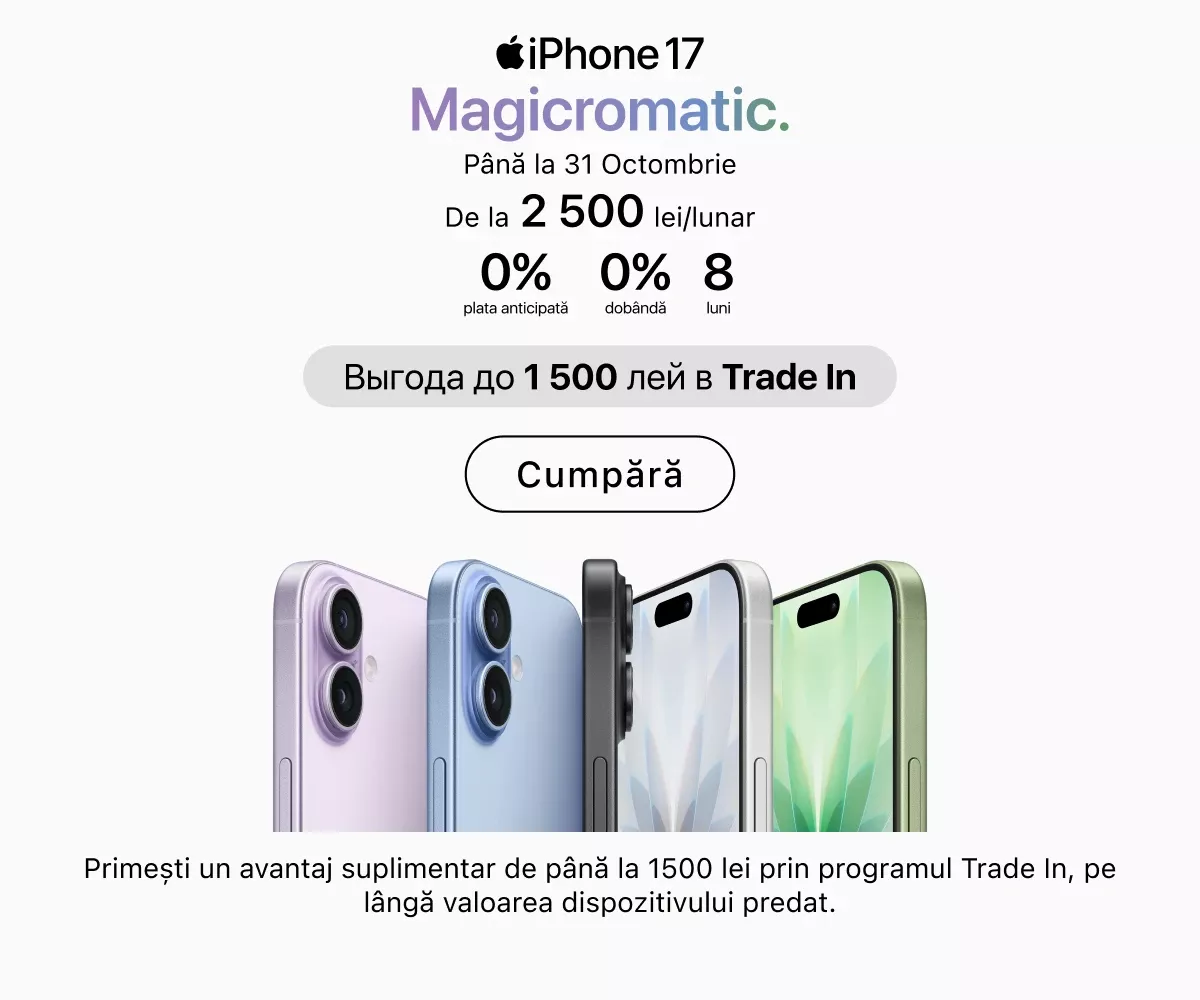 Cele mai recente serii de iPhone se află deja în vânzare. Puteți alege capacitatea de memorie dorită, culoarea preferată și puteți adăuga imediat accesorii originale. iPad-urile sunt ideale pentru muncă și creativitate: toate modelele sunt compatibile cu Apple Pencil și tastaturi, transformând tableta într-un instrument versatil pentru desen, notițe sau redactare.