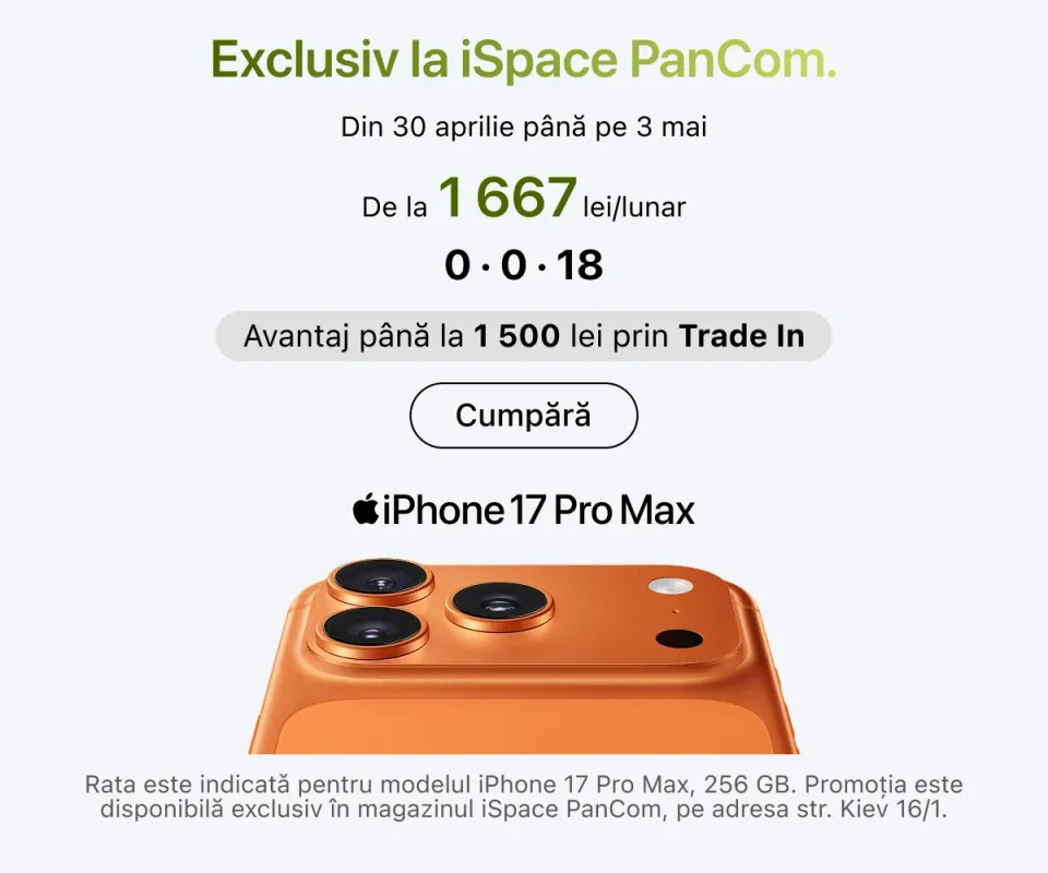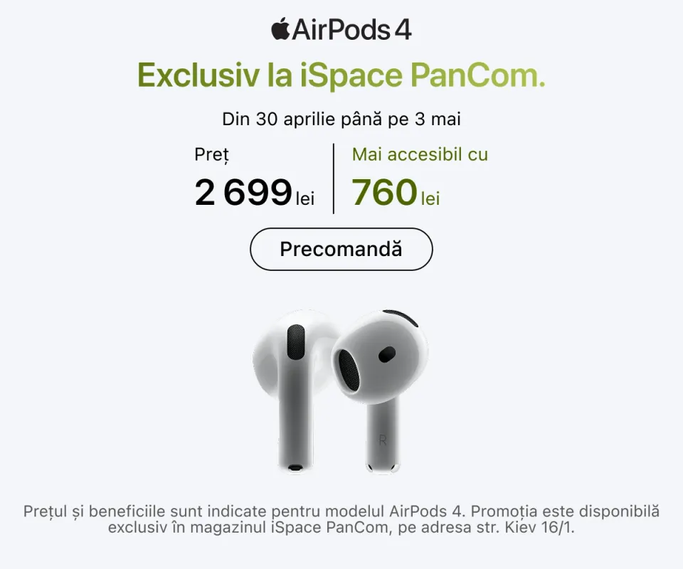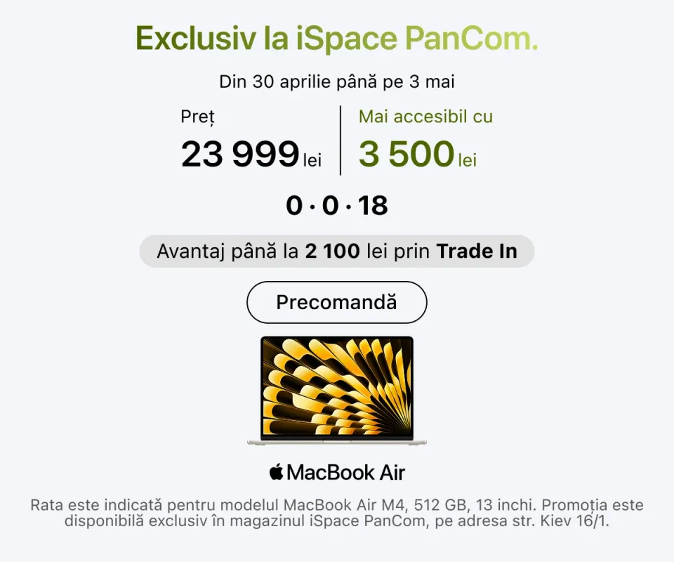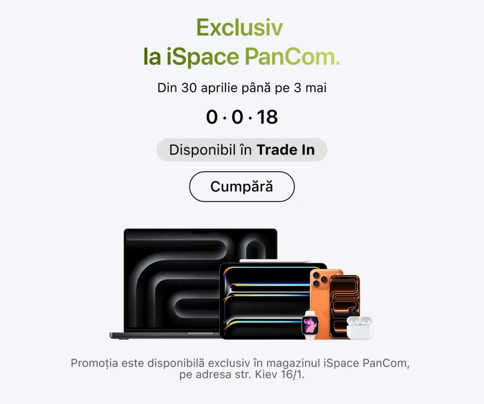 Dacă vizitați un magazin Apple, online sau offline, veți găsi cu ușurință dispozitivul potrivit pentru orice ocazie. În iSpace sunt disponibile toate seriile și generațiile actuale – de la iPhone-urile de bază până la computerele desktop performante Mac Studio.