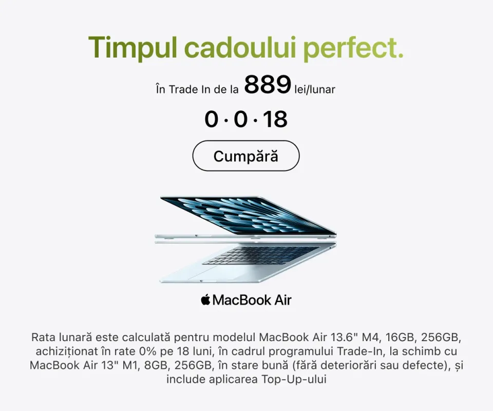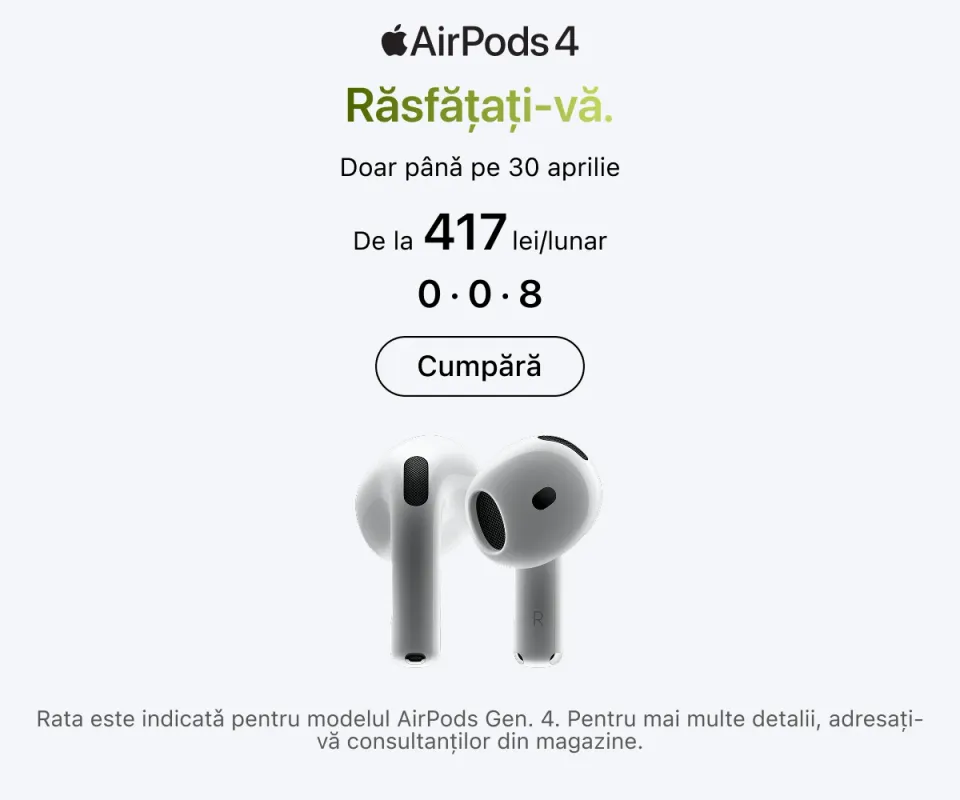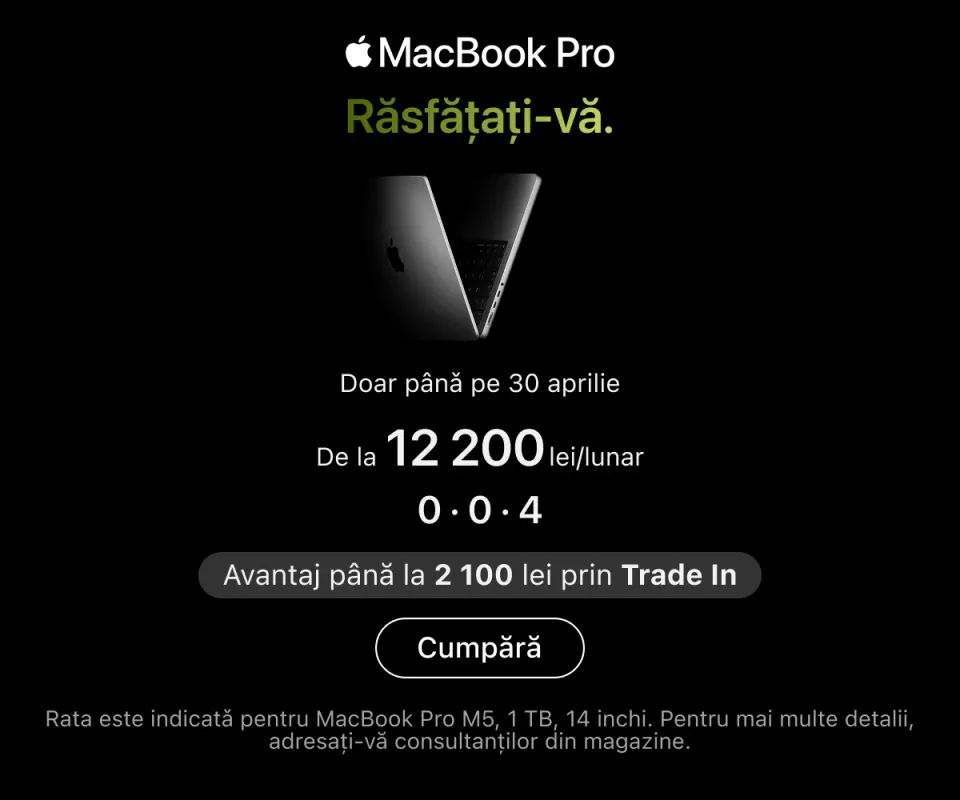 · tehnologie Apple originală, cu garanție și asistență dedicată;