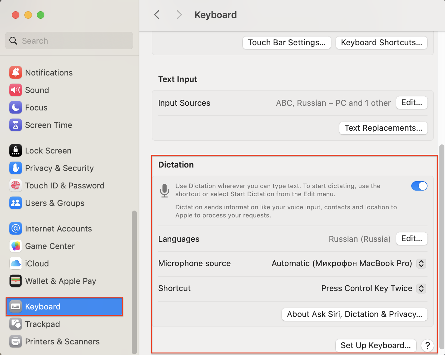 - deschideți „Configurări de sistem” > „Tastatură”;