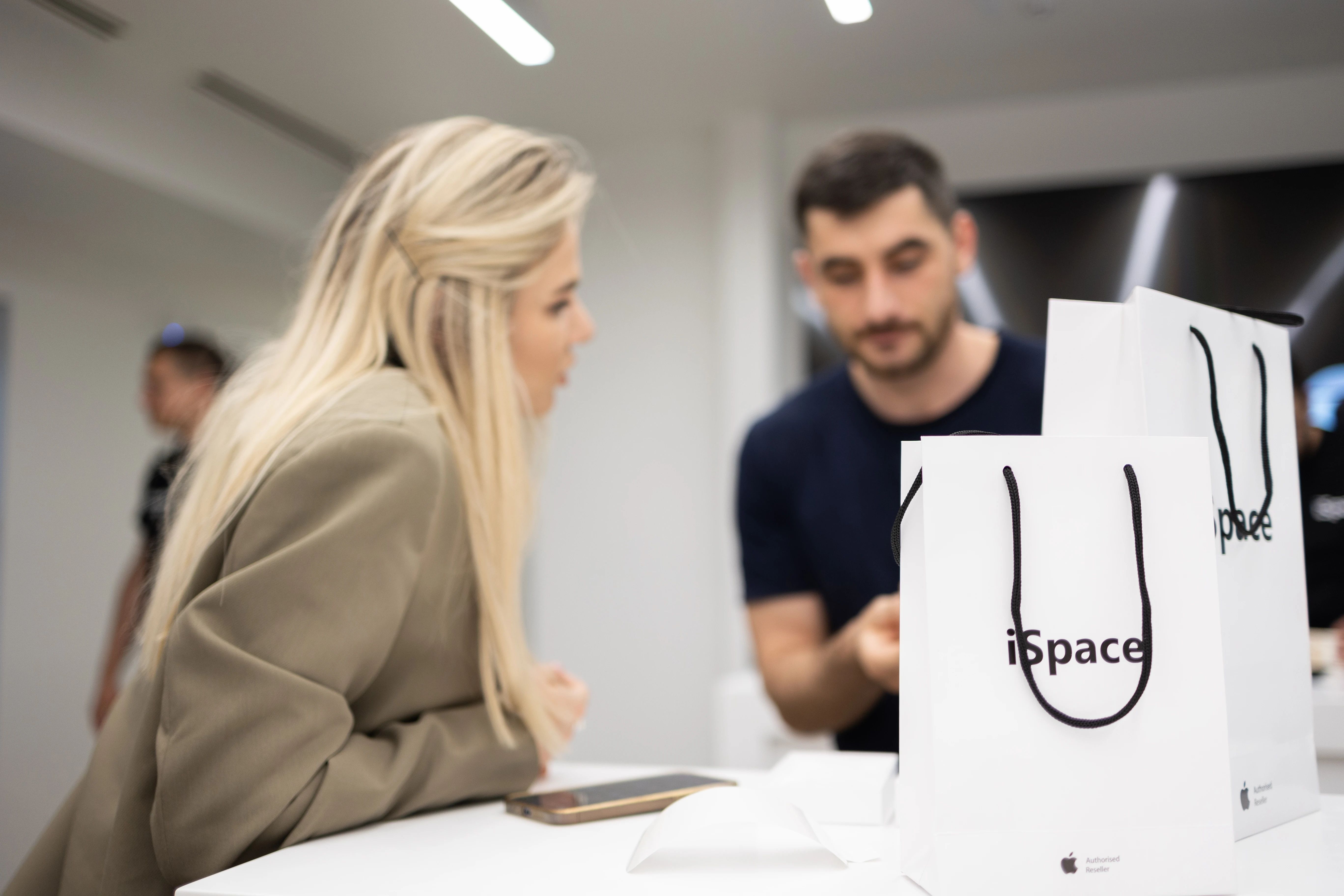 La iSpace sunt disponibile toate noutățile brandului Apple. Toate dispozitivele sunt expuse deschis — puteți compara camerele iPhone, testa aplicații pe iPad și Mac, încerca diverse versiuni de Apple Watch sau asculta muzică în AirPods.