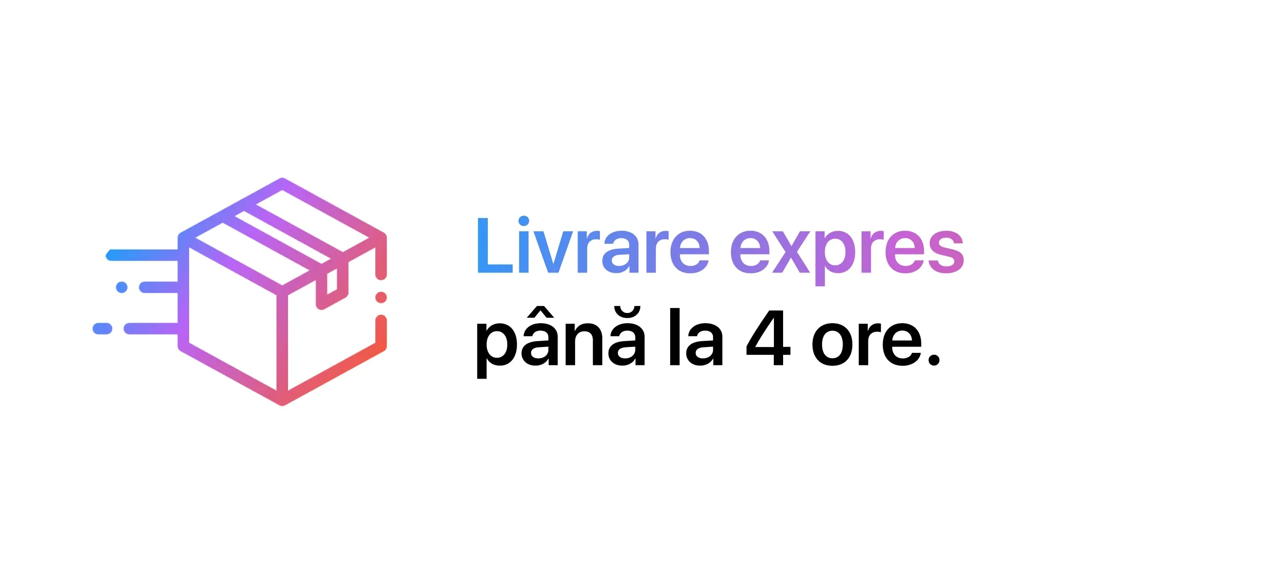 De asemenea, aveți opțiunea de livrare expres, care durează între 2 și 4 ore, contra unei taxe de livrare de 150 de lei.