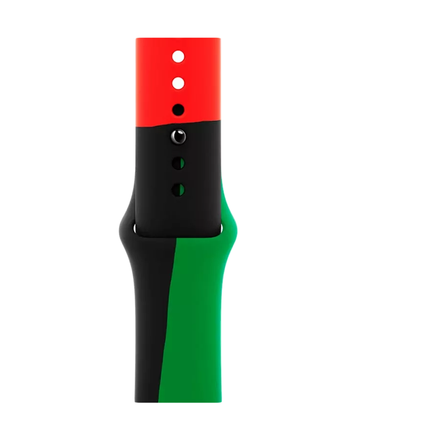 Cureaua Sport Black Unity este creată de designeri de culoare și susținători din întreaga organizație Apple. Inspirată de culorile steagului panafrican, aceasta aduce un omagiu artei tradiționale a țesăturilor. Astfel, celebrăm istoria și cultura africană de pretutindeni. Cureaua este fabricată din trei benzi individuale de fluoroelastomer colorat, asamblate manual și modelate prin compresie într-o singură bandă. Culorile sale se combină perfect cu cadranul de ceas dinamic Unity, ale cărui forme neregulate variază în funcție de mișcările Apple Watch pentru a forma un mozaic unic. Închizătoarea inovatoare de tip capsă are următorul mesaj gravat cu laser: „Adevăr. Putere. Solidaritate.” Apple sprijină organizațiile dedicate promovării echității și justiției rasiale