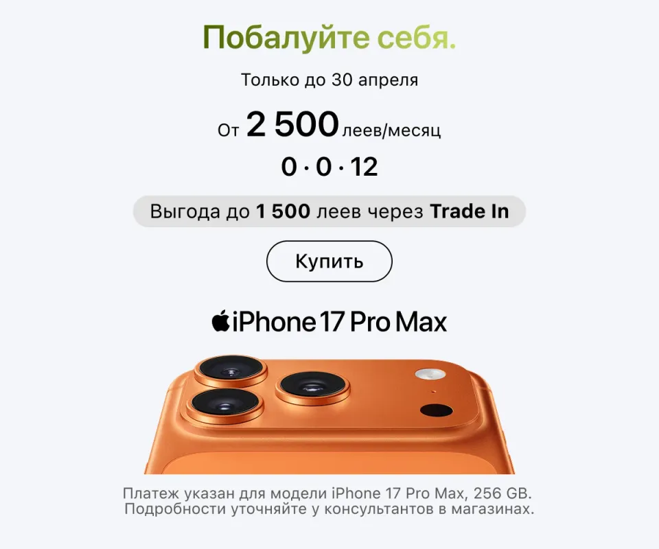 iSpace — международная сеть премиальных розничных магазинов, в которой можно купить технику Apple. В Молдове мы имеем статус Apple Authorised Reseller и поддерживаем строгие стандарты бренда. Все гаджеты поступают напрямую от производителя и имеют фирменную гарантию. Вы можете заказать технику онлайн, прийти в наши фирменные магазины в Кишиневе (их два) и обратиться за ремонтом в сервисный центр.