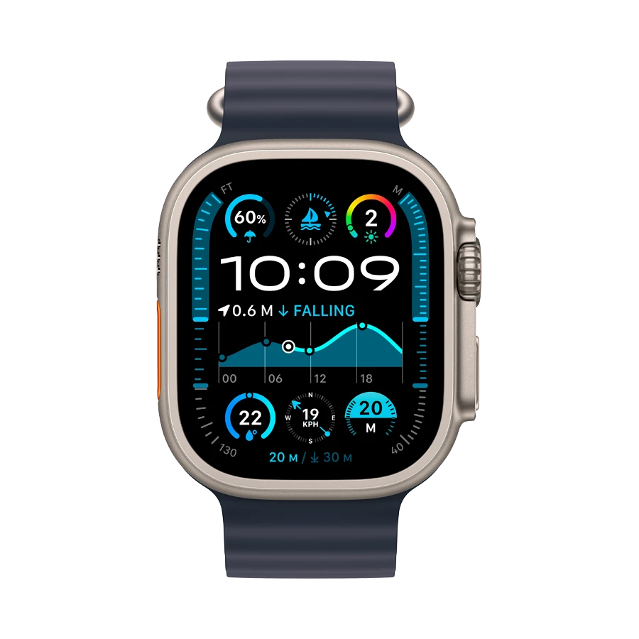 - ЧРЕЗВЫЧАЙНО ПРОЧНЫЕ, НЕВЕРОЯТНО МОЩНЫЕ. Корпус 49 мм из стойкого к коррозии титана. Дисплей с покрытием из сапфирового стекла. Большое колёсико Digital Crown и настраиваемая кнопка действия обеспечивают мгновенный контроль над различными функциями. Протестировано по стандарту MIL-STD 810H. Защита от воды на глубине до 100 метров.